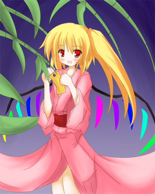 七夕っぽいような気がしないでもない絵を描いたのに一日遅れとかね。 そもそも更新自体一週間ぶり。 gdgdだ~。 さて、先週はいろいろあったんですがね。 地元・山形の友人が泊まりに来たりだとか。 だいたいそうなると無駄に騒いだりして睡眠時間も減るわけで。 とても眠いです。 ちなみに昨日(むしろ今日?)も寝てないですしね。 気づいたら空が明るかったとかもうね。 そこから寝たらたぶん昼まで起きないから、寝るわけにもいかないですし。 そうそう、土曜に秋葉原行ってきました。 なんか久々な気が。 んでホワイトキャンバスで東方缶バッチのガチャ回してきたり。 これがまたひどい。 フラン狙いで紅魔のばっか回してたんですが、前回やった分も含めると、8回やったうち、3回レミリア、3回霊夢、2回小町と3種類しか出ないと。 ありえねー・・・ そうだ、きっと毎回、一緒に行くヤツに運を吸い取られてるんだ。 そうに違いない。